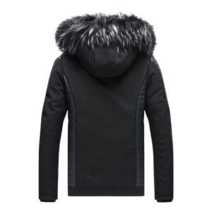 Men?s Black Biker Genuine Sheepskin Detachable Hood Faux Fur Black Quilted Design Motorcycle Rider Parka Warm Leather Jacket